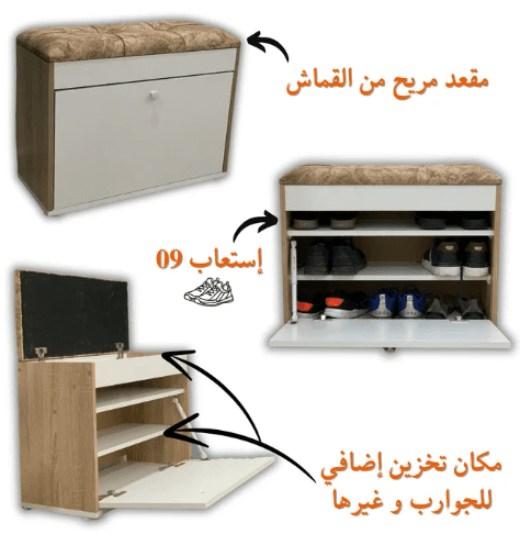 مزود بمقعد مريح من القماش يساعد عند ارتداء أو نزعل أحذية بكل سهولة